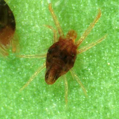 (Panonychus ulmi, Epitrimerus pyri) Sus picaduras en brotes y hojas hacen que estos se sequen y caigan, provocando graves pérdidas por la defoliación y debilitamiento de los árboles.
