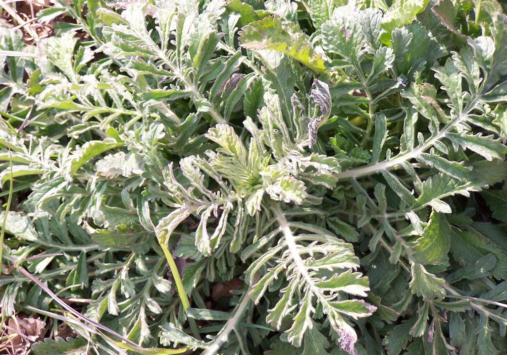 Pequeños cotiledones obovales, con ápice ligeramente dentado, con peciolos cortos. Primeras hojas enteras, ovales, pecioladas y dentadas.