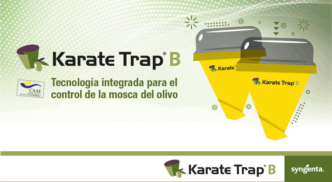 KarateTrap®B se presenta como una herramienta de trampeo para captura masiva de la mosca del olivo Bractocera oleae (atracción, captura y muerte).